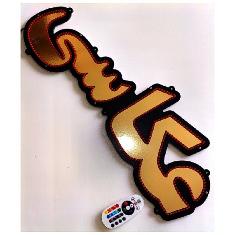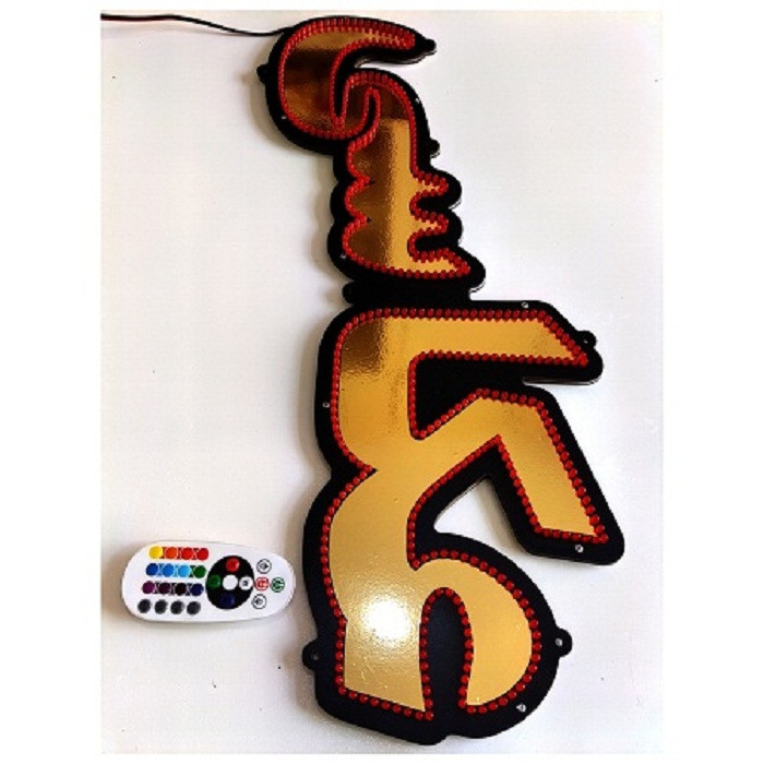زمینه آینه طلایی// فلاشر ریموت دار// ال ای دی گرید A// پک کامل نصب// رنگ ال ای دی=قرمز//