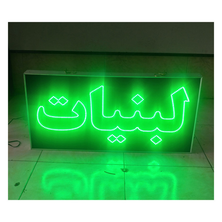 سایز 40 در 80 یکطرفه چشمک زن رنگ سبز ضدآب مناسب نصب فضای بیرون قاب آلومینیوم و قلاب آویز به همراه ترانس و دوشاخه برق ال ای دی پرنور لیزری